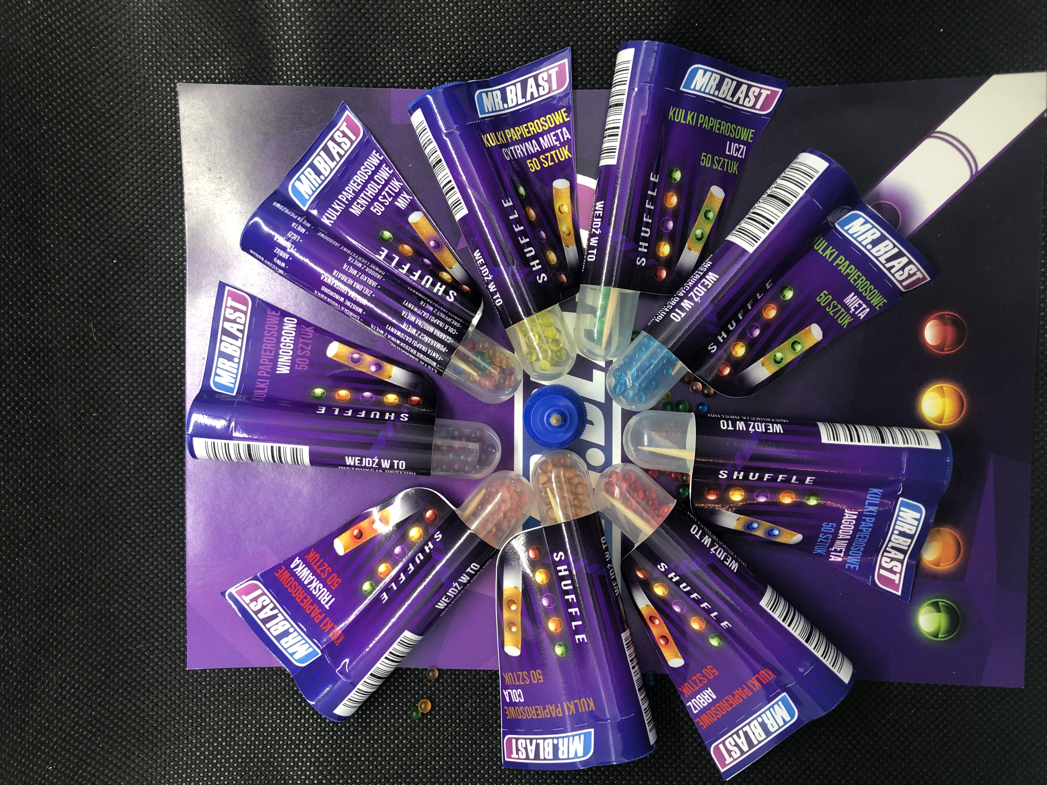 We offer Mr. Blast flavor balls, thanks to which you will not have to give up the familiar menthol flavor of cigarettes. We distribute only proven proposals, so we are sure that this product will meet with your approval. The aroma obtained in this way is very persistent, therefore it remains from the moment of lighting the cigarette to the extinguishing of the cigarette. Our existing customers, among other things, appreciate this product and leave only positive opinions about it. In one package you will find as many as 50 pieces of balls, so one purchase is enough for a very long time. Spearmint mint cigarette balls are closed in a convenient package that you can easily take with you wherever you need.